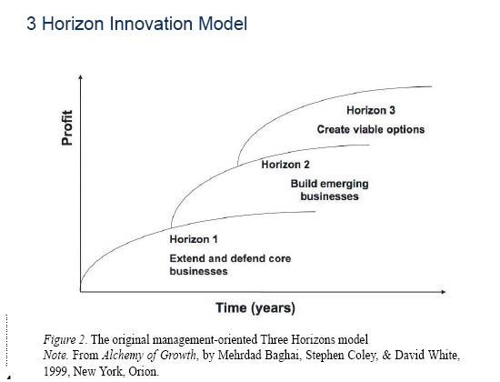 - Innovation map: First, we need to draw our innovation map by looking at the timeframe of our current innovation activities (short-/medium-/long-term) and their alignment with our existing business model. Then we have to divide this map into three horizons, namely core business/emerging business/future business (see template below). If most of our work evolves around our current core business, the impact of open innovation there will be relatively low. The main influence of open innovation is pertinent in emerging and future business. In short, if we want to be more ambitious in emerging and future business, open innovation seems to be the ideal solution.